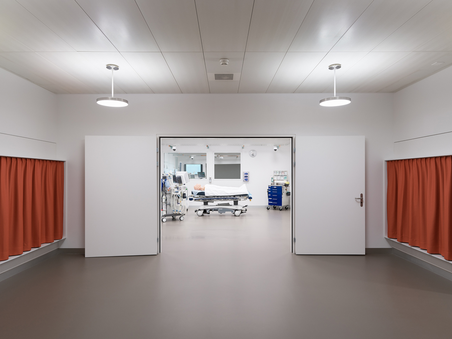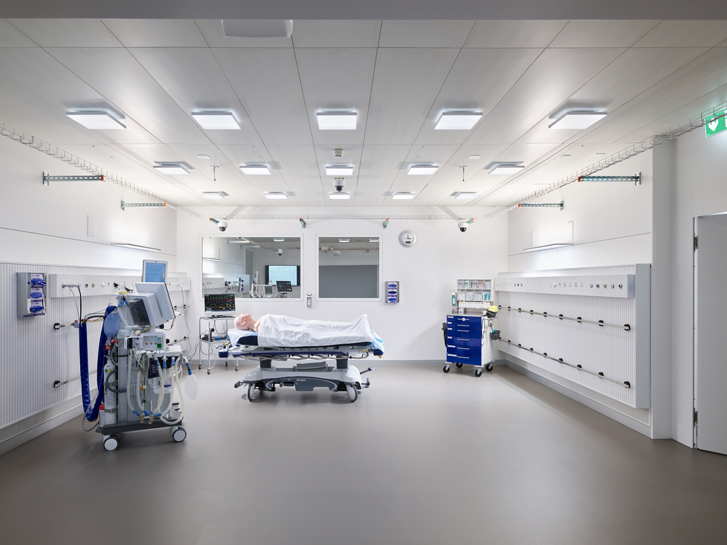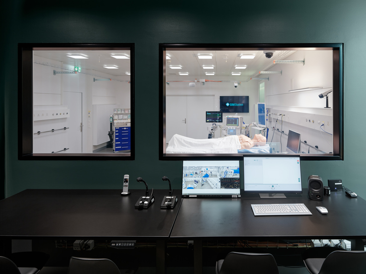 Im Rahmen der Neubelegung des Hauses K wurde im Untergeschoss ein zeitgemässes Simulationszentrum realisiert, welchen neuesten technischen Anforderungen genügt. Durch eine klare Priorisierung der Eingriffe konnten die Räume mit verhältnismässig wenig Aufwand in perfekte Trainingsräume umfunktioniert werden.