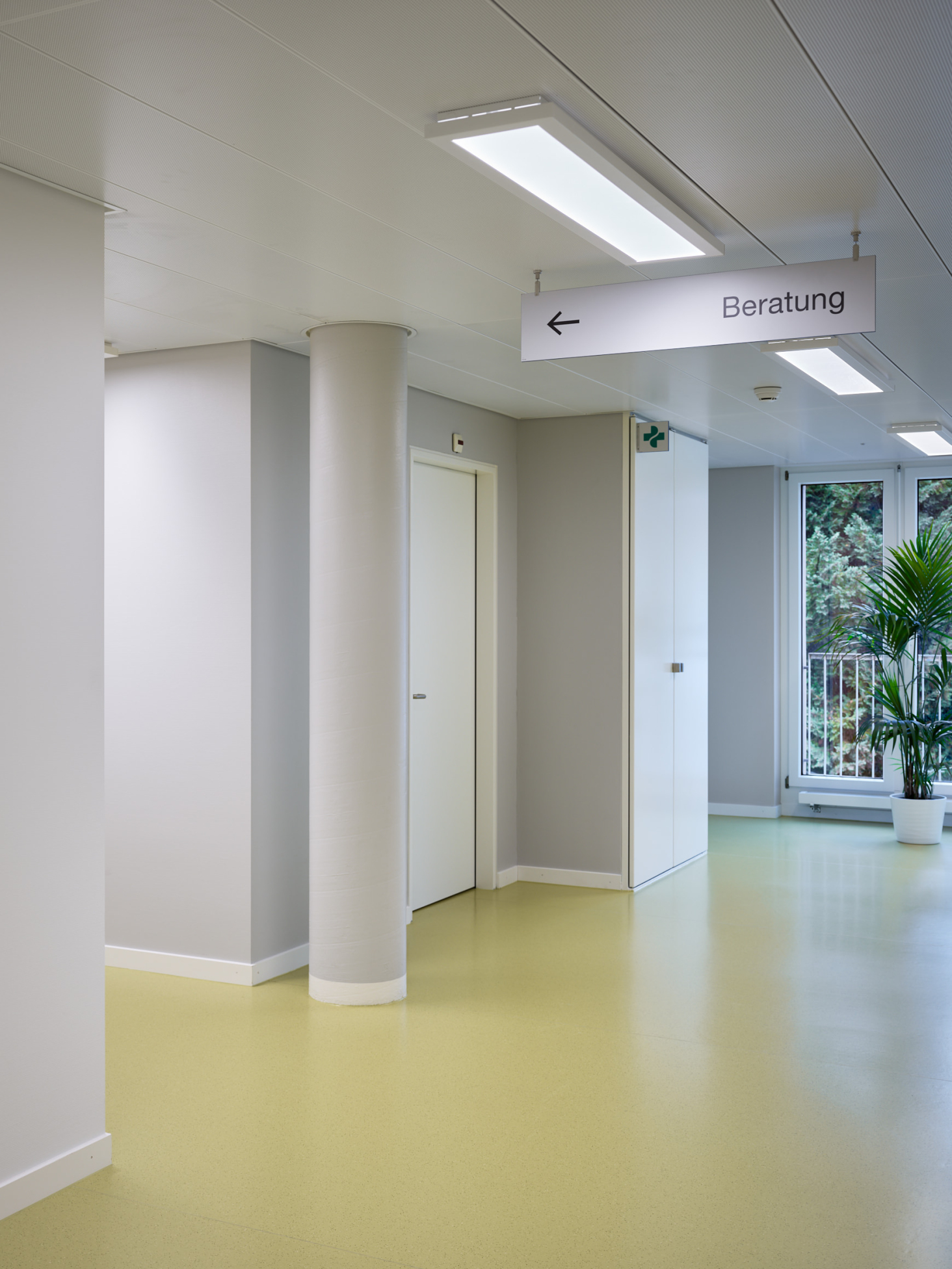 Im Haus K wurde im Zuge der Fertigstellung des neuen Bettenhauses Fläche frei. Das gesamte Gebäude wurde für die Medizinische Onkologie umgebaut und an die neuen Bedürfnisse angepasst. Die Eingriffstiefe unterscheidet sich von Raum zu Raum im Sinne eines kostenbewussten Umgangs mit der Substanz. Der Einbau einer neuen Zytostatika (durch einen Partner) stand im Mittelpunkt der technischen und koordinativen Herausforderungen. Die Gebäudehülle blieb bis auf die Erstellung eines neuen Eingangsbereichs bestehend.