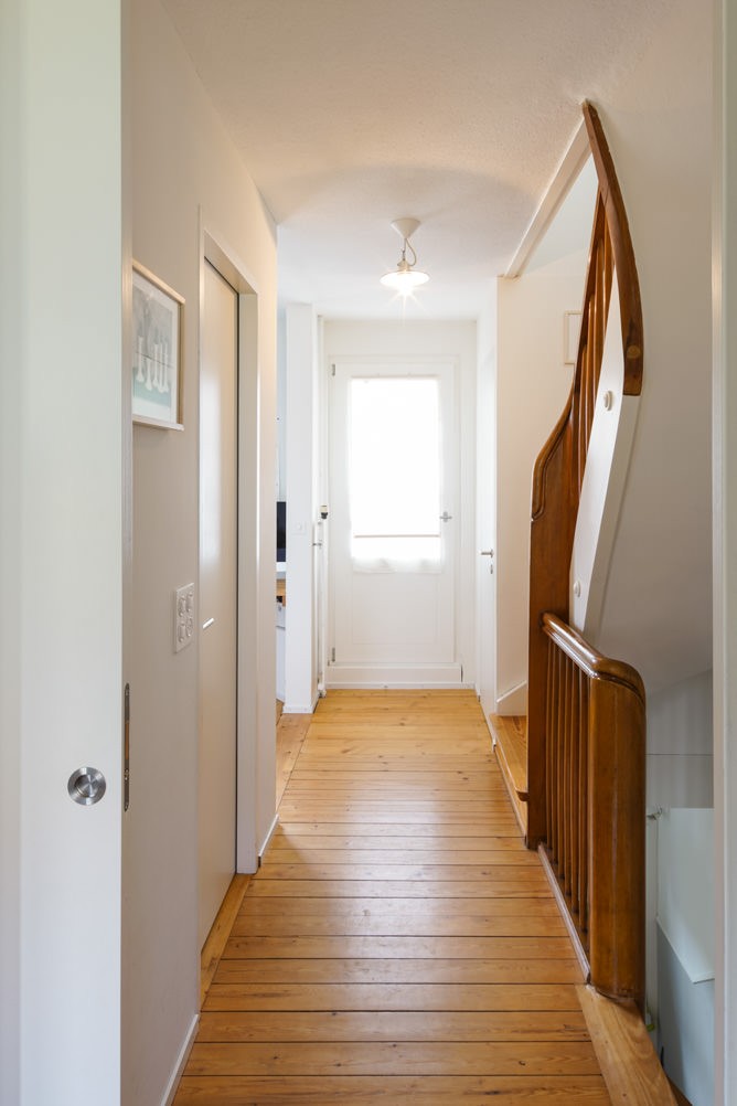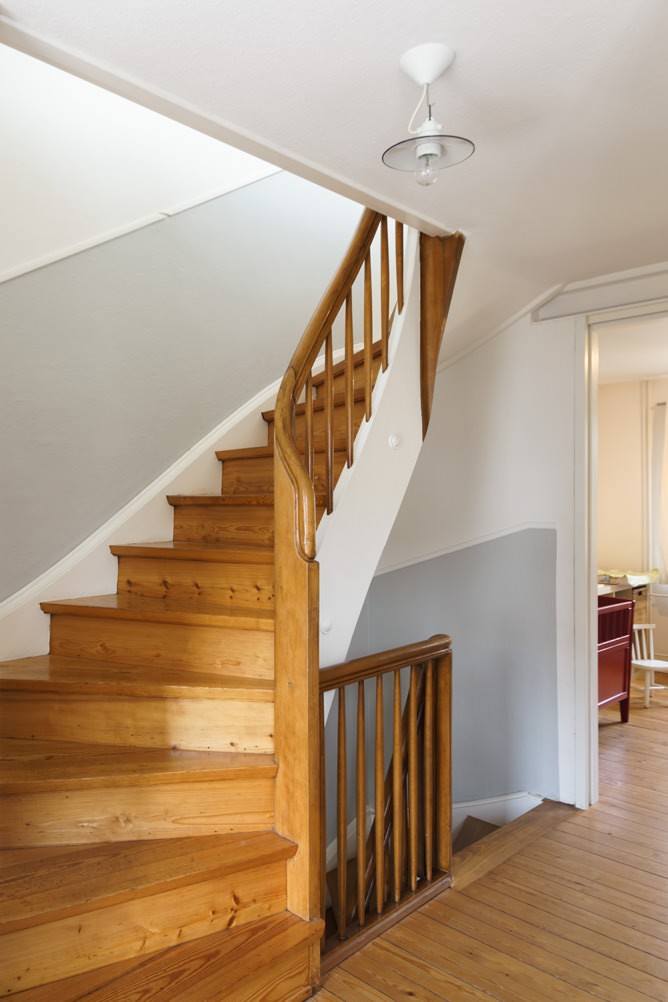 Das Treppenhaus als charakteristisches Element des Hauses wurde belassen, bzw. dem Originalzustand wieder angenähert. Über die Jahre ist ein charmantes, offenes, modernes und gepflegtes Eigenheim entstanden.