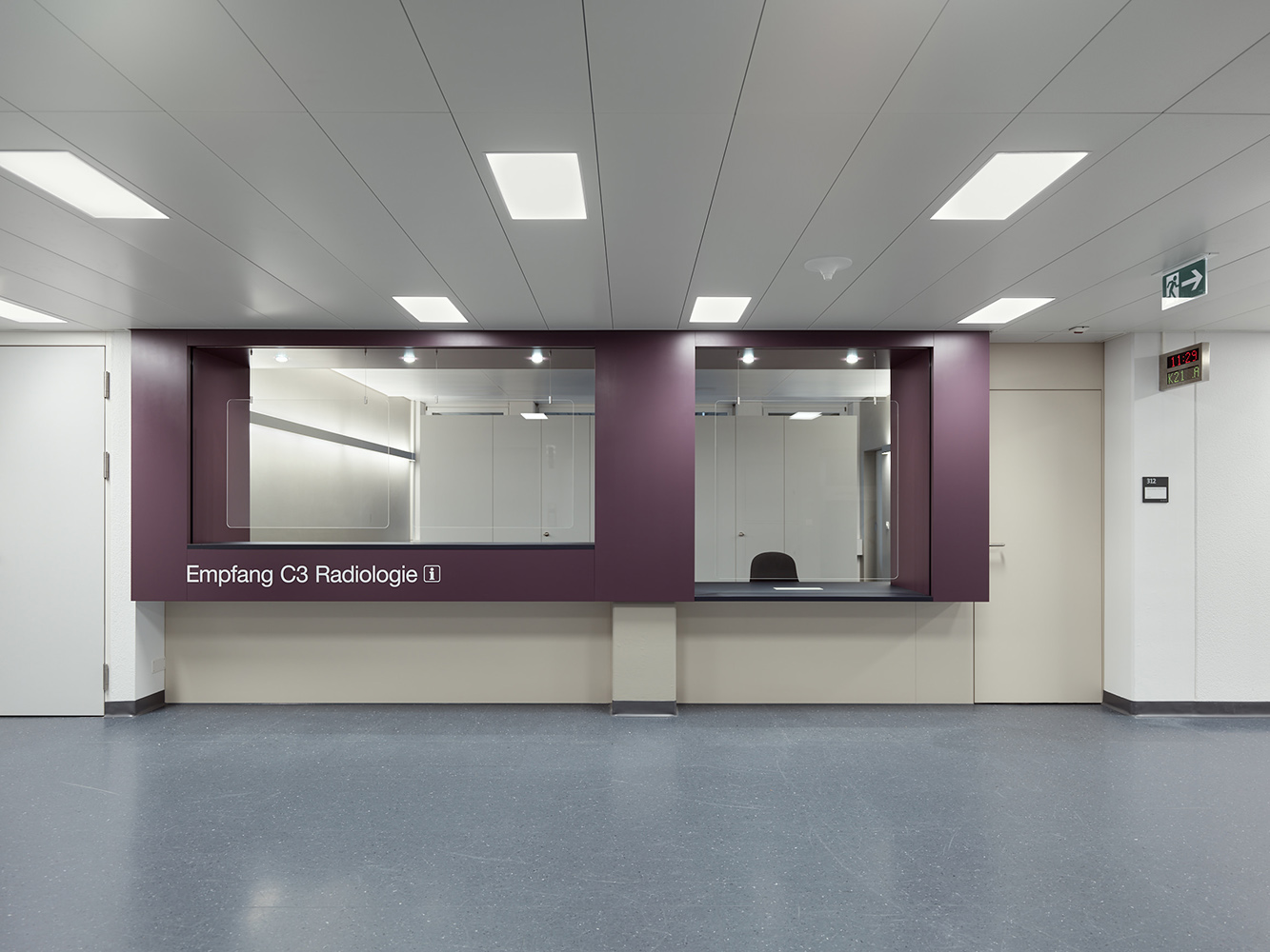 Ab Dezember 2020 begrüsst das Institut für Radiologie und Nuklearmedizin des Kantonsspitals Winterthur seine Kunden im 3. Obergeschoss an gut auffindbarer Lage vis-à-vis dem Lift aus der Empfangshalle. Neben dem Einbau des neuen Empfangs werden die angrenzenden drei Büroräume an heutige Bedürfnisse angepasst. Der neue Ultraschallraum eröffnet Möglichkeiten für innovative Behandlungsmethoden.